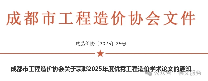 根据成都市工程造价协会《关于开展2025年工程造价学术论文征集和优秀论文评选活动的通知》(成造价协〔2025〕13号)的要求,对各会员单位报送的论文,我会组织有关专家经过认真评审,现评出“机场航站楼项目高填方区桩基塌孔处置方案技术经济研究”等289篇论文为成都市工程造价协会2025年度优秀工程造价学术论文,其中:一等奖11篇,二等奖43篇,三等奖98篇,鼓励奖137篇,并于2025年11月13日至11月19日予以公示。公示期间无投诉及质疑,现决定予以表彰。