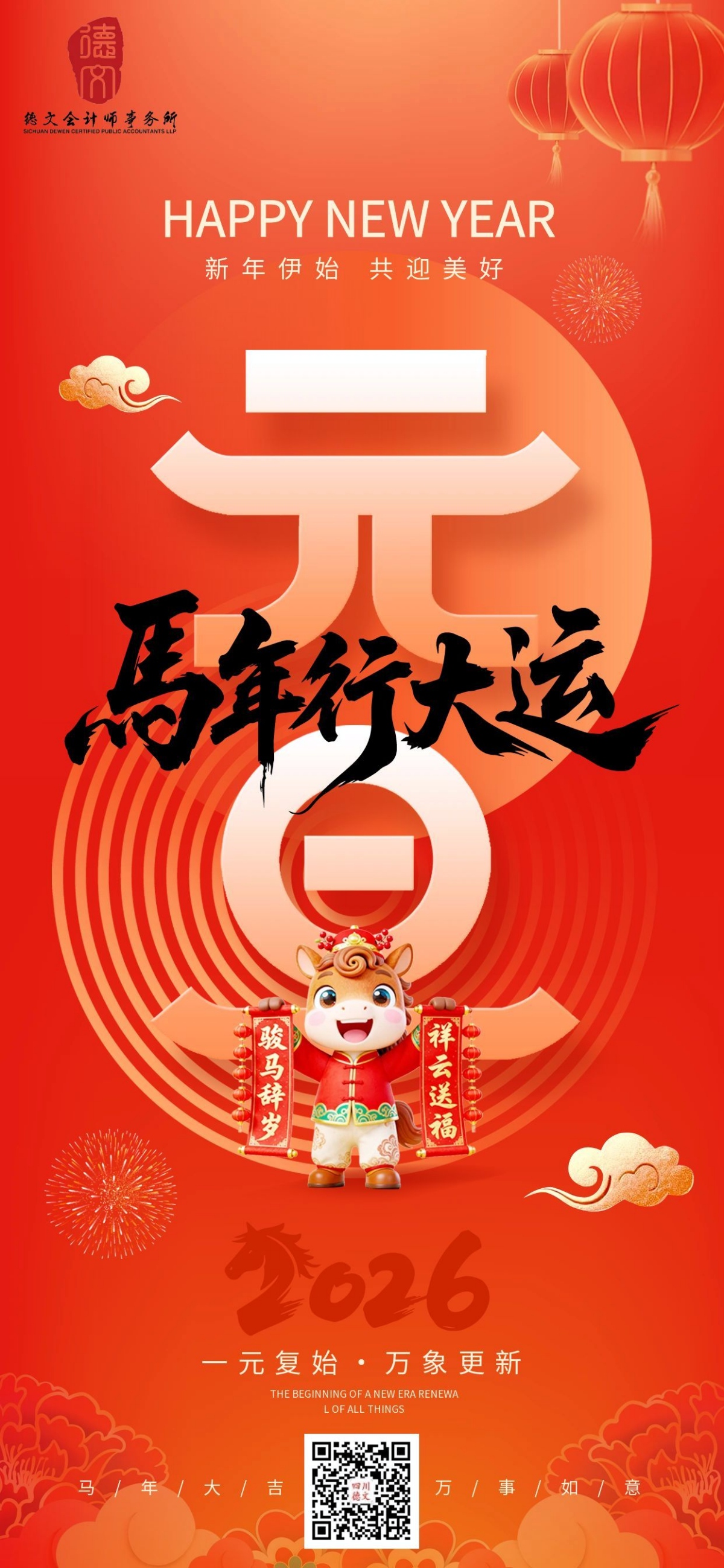 一元复始,万象更新,在2026丙午马年的元旦钟声里,四川德文会计师事务所(特殊普通合伙)向所有客户、合作伙伴及全体同仁,致以最热烈的新年祝福!