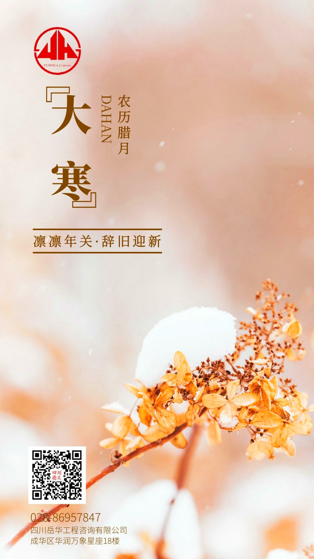 凛冬终有尽,春暖花自开。大寒不仅是冬的尾声,更是春的序章。它提醒我们,所有蛰伏都是为了更好的生长,所有坚守终将迎来绽放。新的一年,四川岳华工程咨询有限公司将继续秉持专业、务实、创新的理念,以更饱满的热情陪伴您跨越山海,以更扎实的能力为您保驾护航。