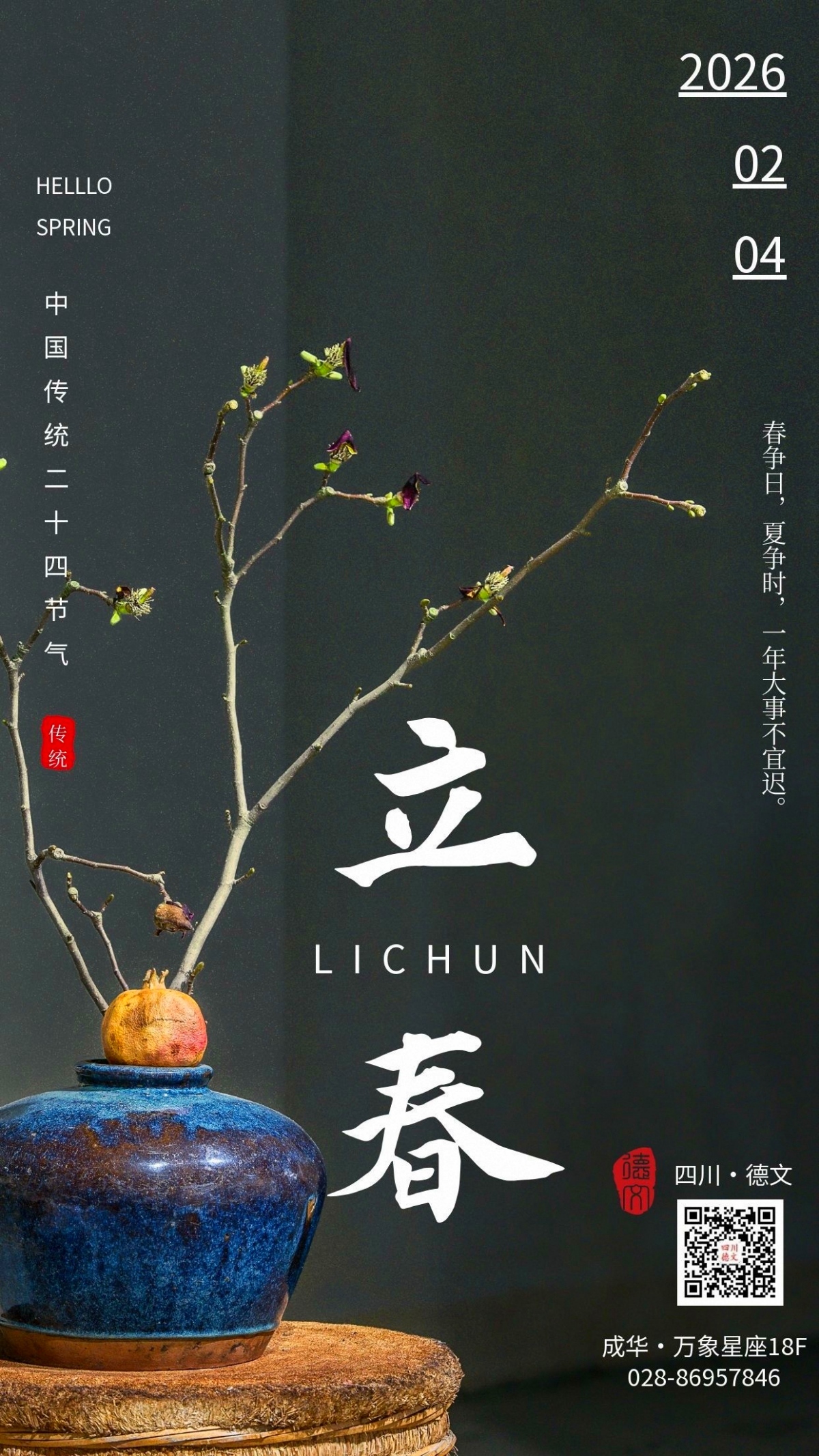 2026年2月4日,恰逢立春。案头陶罐插着初萌新枝,石榴静卧,暗调光影里藏着春日的温柔期许。“春争日,夏争时”,借着这抹新生绿意,愿我们都能把握时光,在新岁里向阳生长,不负春光,不负自己。