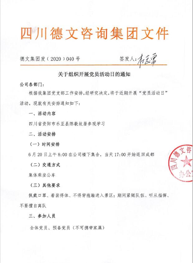 德文咨询集团关于组织开展党员活动日的通知