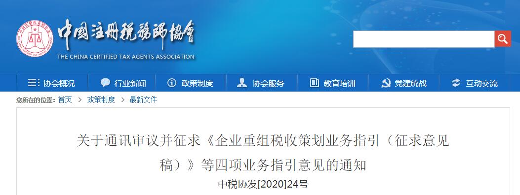 为规范税务师行业执业行为,推动涉税专业服务标准化建设,根据国家税务总局《涉税专业服务监管办法》等有关规定,中税协组织制定了《企业重组税收策划业务指引(征求意见稿)》等四项业务指引。