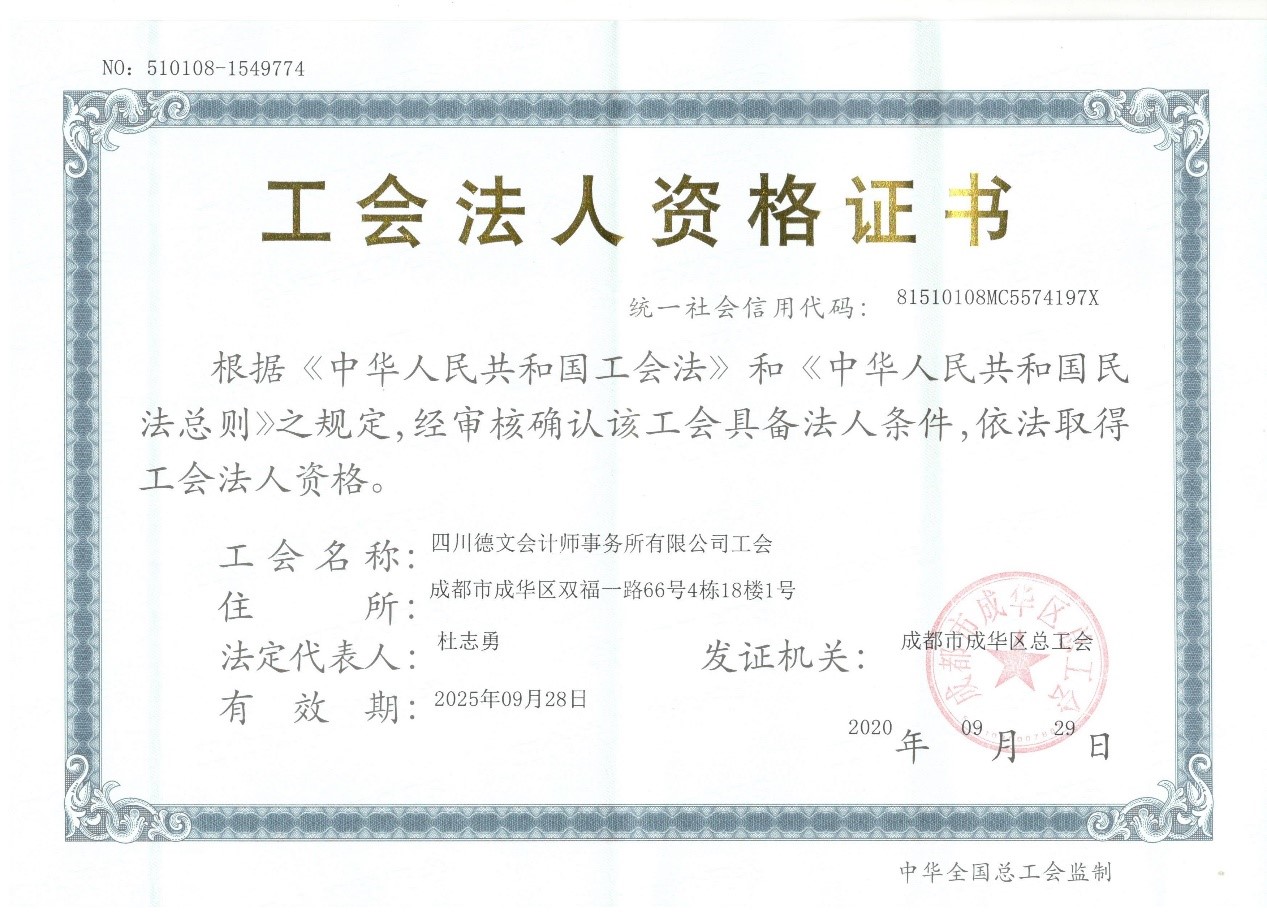 热烈祝贺四川德文会计师事务所有限公司取得工会法人资格