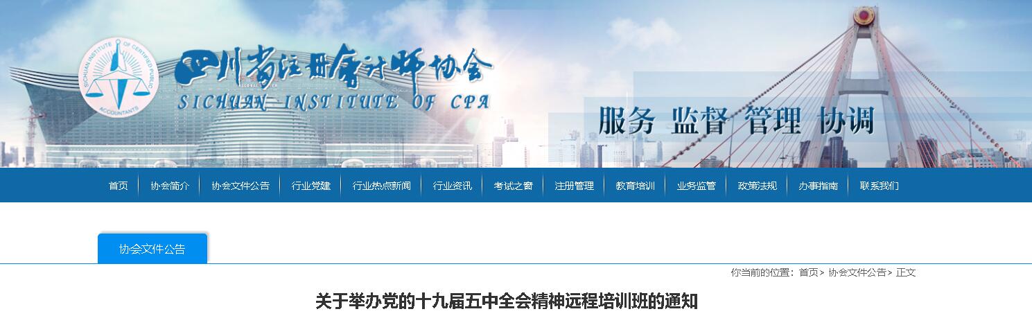 根据中国注册会计师行业党委《关于举办党的十九届五中全会精神远程培训班的通知》要求,现将我省举办学习党的十九届五中全会精神远程培训班有关事项通知如下: